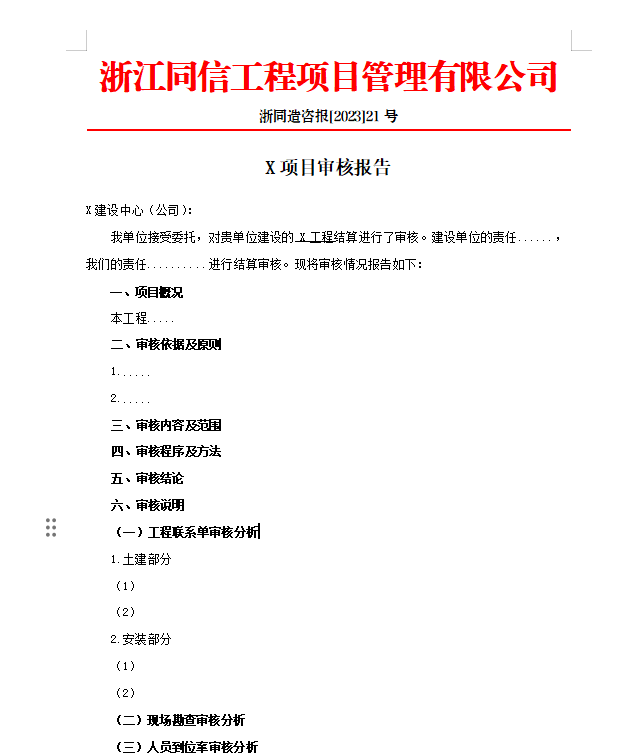 造价咨询报告格式范例(红头文件):下载链接:http://www.tongxinzixun.com/34fdbf9c17c24a4a7dd6ede906db9d29e7798f78/咨询报告格式范例(红头文件).docx